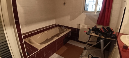Projet: rénovation d'une salle de bainTravaux: Seule la baignoire a été conservéDépose des élémentsDépose du linoRemplacement de la fenêtreIsolation d...